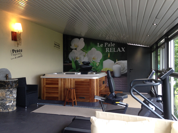 Swimming pool with solarium and playground for children, film area and playstation, fitness and relax for adults.